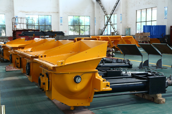 混凝土泵送機構包括混凝土缸,混凝土活塞總成,水箱,油缸活塞桿, 主油缸以及擺閥油缸等